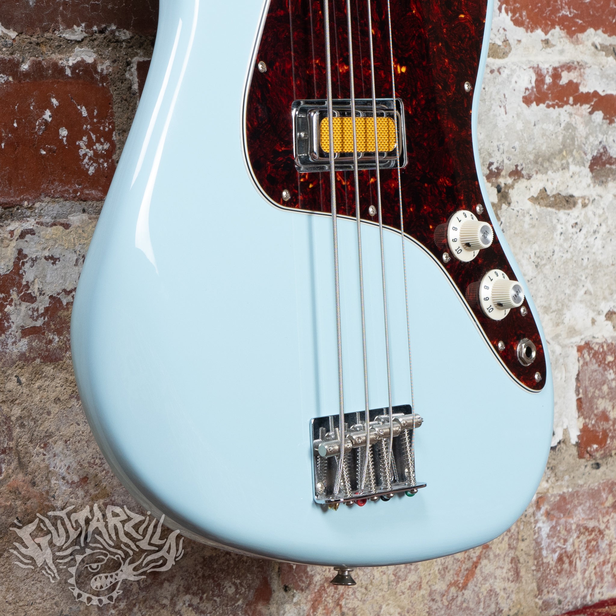 They've really nailed the vintage styling here, the sonic blue finish with matching headstock and bound neck is about as cool as it gets - and the tortoiseshell scratchplate really accentuates the sweet curves of the Jazz Bass.